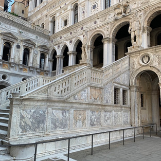 So on our full day in Venice, we tried to pack in as much as we could. Ken had planned two tours for us. The first tour was in the morning. We walked to St. Mark's Square to meet up with the Viator representative who introduced us to our tour guide and to hand out our radios. With this tour we explored St. Mark's Square, the Doges' Palace and St. Mark's Basilica. The name of our guide is Alessandro. He was very knowledgeable and you could tell the deep pride he had for his city. He took us through various rooms of the palace, but with this particular tour, the Doge's apartments was not included. It was neat to go through the palace. It was cool to see the Bridge of Sighs from the palace and to see all the beautiful artwork within. When we moved to tour the basilica we encountered something that I have always wanted to see, the Tetrarch. This is a small statue, maybe 4 ft. tall, that is on a corner of the basilica. It represents the period in the later part of the Roman Empire when the empire was divided into two, Eastern and Western halves and had two Caesars and two little Caesars whose job was to help their respective Caesar rule their half.