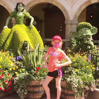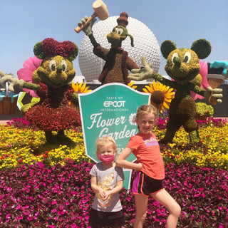 Day 4 was Epcot. I am glad we did the park, but in reality this park really isn't for kiddos. The girls enjoyed the rides like Elsa and Finding Nemo, and we started the day and ended the day with rides. In between we walked through the different countries. We happened to be there during their flower festival, so that meant food samples from the different counties and amazing topiary. This park is open the latest of the four and I think it is to cater to the adult crowd. The girls also worked on a scavenger hunt by collecting badges from each country. This was a fun way to keep them engaged.