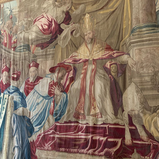 After we met our guide and received our headphones, we headed to the Vatican. Upon entering you go through security. After you get through security, which is like going through TSA but not nearly as rigorous, you climb some stairs and find yourself within one of the many buildings that make up the Vatican. Fun Fact: the Vatican has an art collection that would take about 3 years to see, if you do not sleep or eat. It is a little overwhelming, the size of the area. We took a very specific route that would end at the Sistine Chapel before going into St. Peter's. Along they way to the Sistine Chapel, we saw some amazing sculptures and tapestries. Everywhere you looked there was something to admire and you couldn't help but feel like you were still missing so much. It reminded me of the Louvre in Paris. Along the way we passed through different chambers that were once private residences of past popes. We saw an amazing tiled floor and then we went into a room that took my breath away.