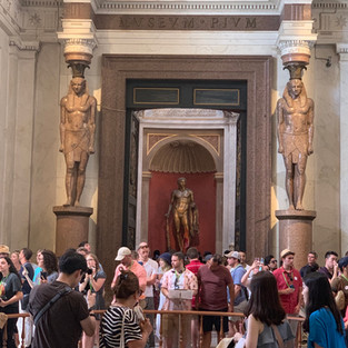 After that room, we went through a couple of other rooms and made our way to the chapel. I want to go on record as saying it is a little disappointing that you can't take pictures. I know they do it to protect the paintings but I also feel they do it for crowd management but also because it is such an important room. It is in the Sistine Chapel that a new pope is voted on. I also learned something new about the Sistine, that one of Michelangelo's rivals recommended him to paint it, even though Michelangelo did not consider himself a painter. He was forced to do it. I find it ironic that his rival sought to embarrass him, but in doing so forced him to do something that he is ultimately remembered for. The different panels on the ceiling are amazing, as well as the Last Judgment. It is truly something to see as they say.