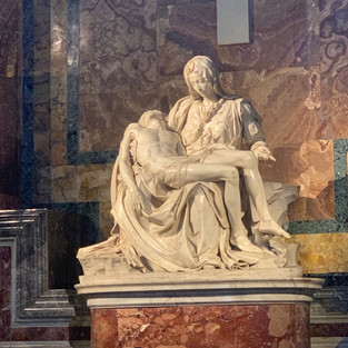 After the Sistine Chapel we went to St. Peter's. The basilica is huge. We entered into it and kept to the right. The first thing you see is the Pieta by Michelangelo. It is hard to get close but Ken braved the crowd and got as close as he could to look at it. (I have a problem with large crowds). It is impressive, but it is so hard to appreciate the craftsmanship since it is behind glass. This was the reason I wanted to see the Moses, as I alluded to in my previous post on Rome. We spent about 30-45 minutes within the church. We were not able to see all of it because they were having Mass. All the marble within and sculptures are so impressive.